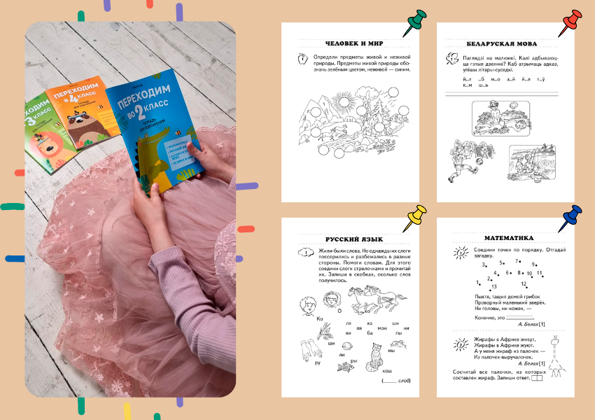 Серия пособий включает занимательные задания по предметам «Математика», «Русский язык», «Беларуская мова» и «Человек и мир».