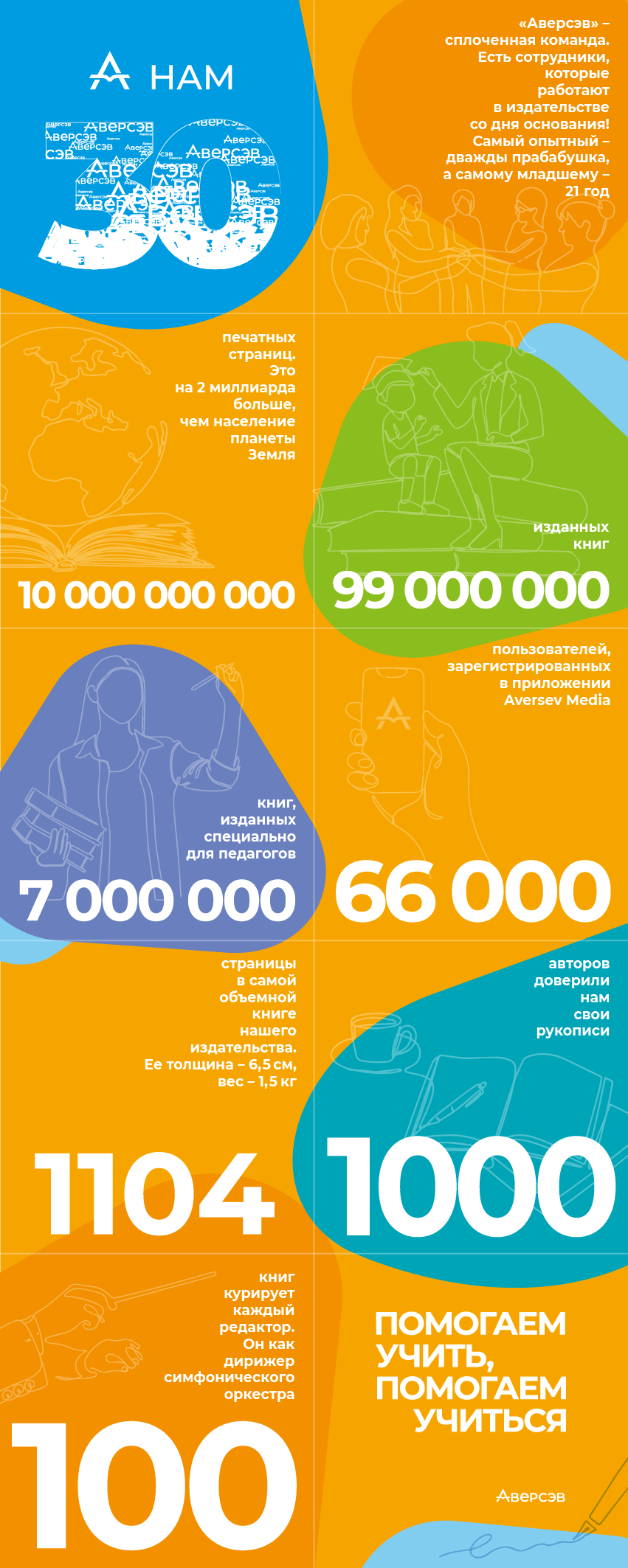 За нашим юбилеем стоит труд профессионалов и опыт руководителей, а главное – сотни тысяч детей, родителей и педагогов, которым посвящена наша работа. Мы любим свое дело и ценим тех, кто рядом.
