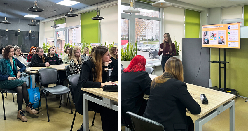 На лекции «Маркетинг в издательском деле» учащимся рассказали, что происходит с пособиями после типографии, как донести информацию о новом пособии до целевой аудитории, в чем особенности использования социальных сетей и успешного продвижения книг.