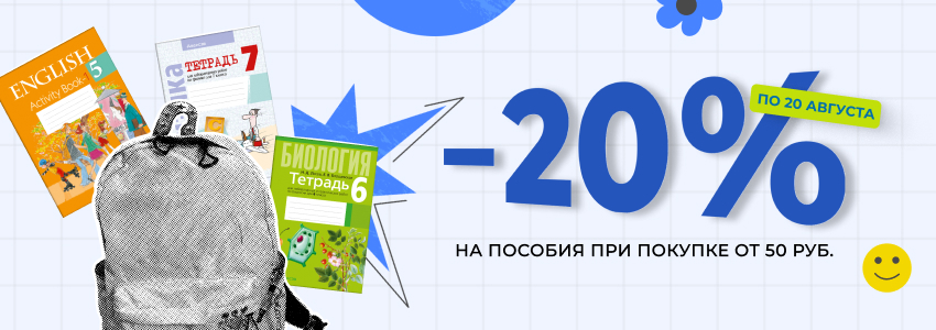 * Обращаем ваше внимание: при оплате книг в приложении e-Aversev через платформы Android и IOS скидка действует с ограничениями. Это связано с политикой Google и Apple относительно установления цен на товары. В акции не участвуют пособия других издательств и полные сборники тестов РИКЗ.Подготовка к учебному году в самом разгаре – и у нас для вас подарок! Покупайте пособия на сумму от 50 рублей в интернет-магазине aversev.by и получайте скидку 20 % на ваш заказ*.