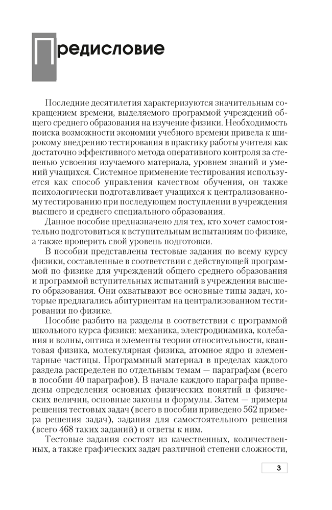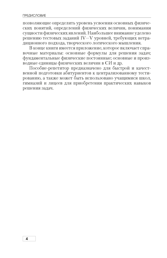 Пособие-репетитор предназначено для тех, кто хочет самостоятельно подготовиться к вступительным испытаниям по физике. Здесь представлены тестовые задания, охватывающие все основные типы задач, которые предлагаются абитуриентам на централизованном тестировании.