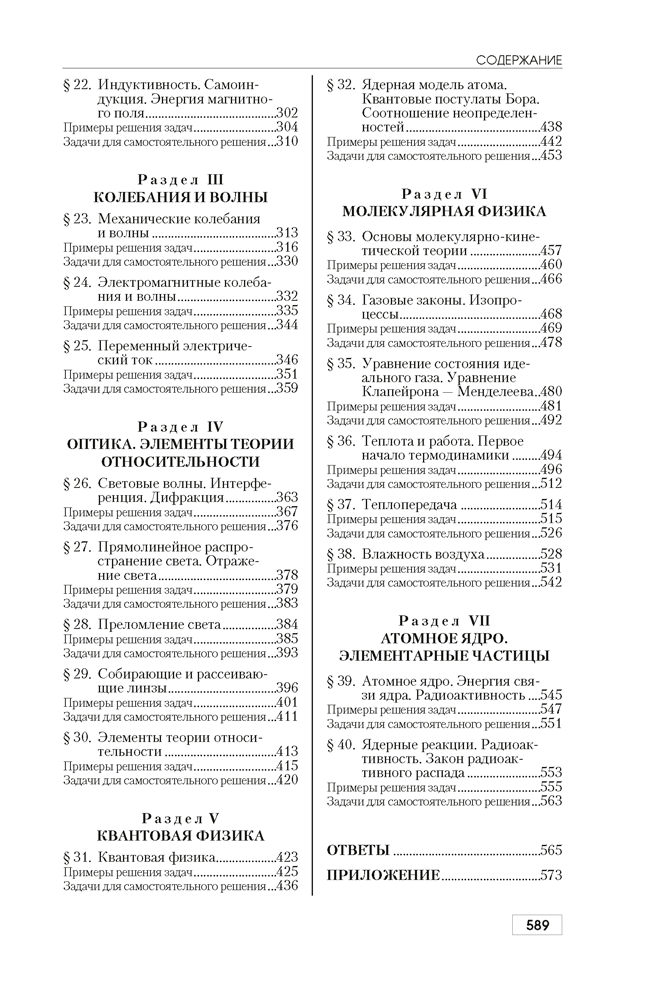 В каждом параграфе приведены определения основных физических понятий и величин, основные законы и формулы; примеры решения тестовых задач; задания для самостоятельного решения. В конце книги имеется приложение, которое включает справочные материалы и табличные данные, необходимые для решения задач. Весь материал систематизирован, изложен просто и доступно, что дает возможность полноценно повторить курс физики.