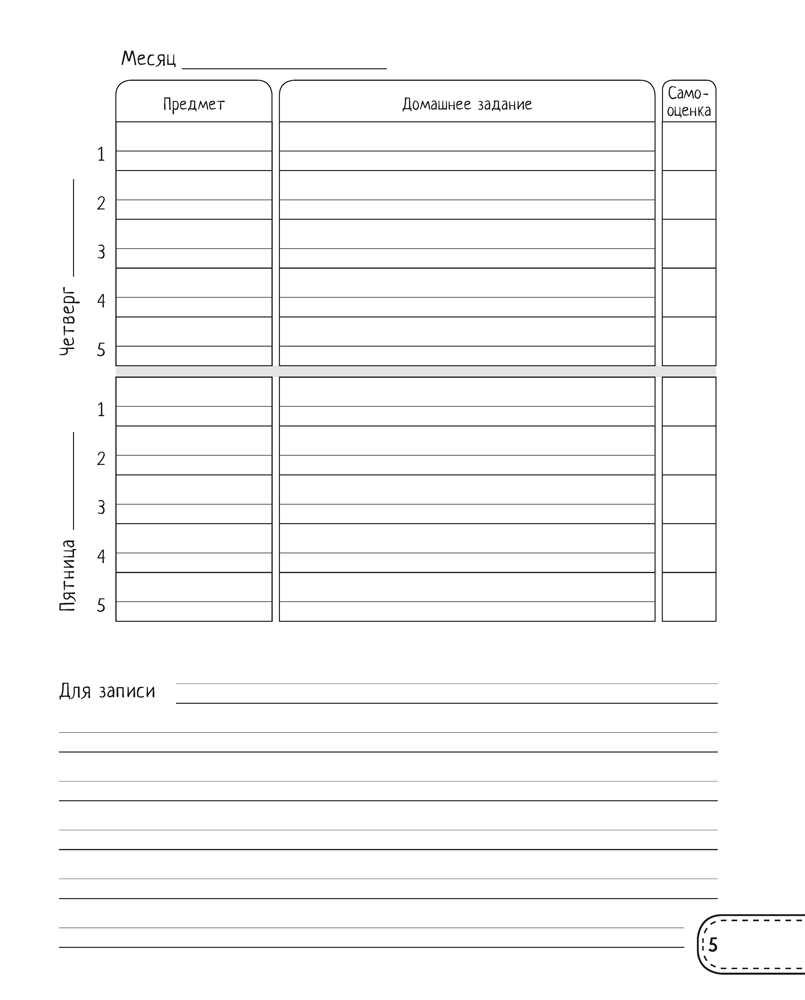 Помимо расписания уроков и домашних заданий, в «Дневничке» можно записать дополнительные мероприятия на каждую неделю, планы на каникулы, в отдельные разделы – замечания, благодарности, рекомендации учителя. В конце издания приводятся правила заполнения и ведения «Дневничка».