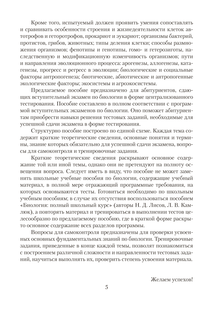 Книга поможет систематизировать знания и подготовиться к централизованному тестированию по биологии. Она содержит краткие теоретические сведения, вопросы для самоконтроля и тренировочные задания в виде тестов. В конце книги даются ключи ко всем заданиям.