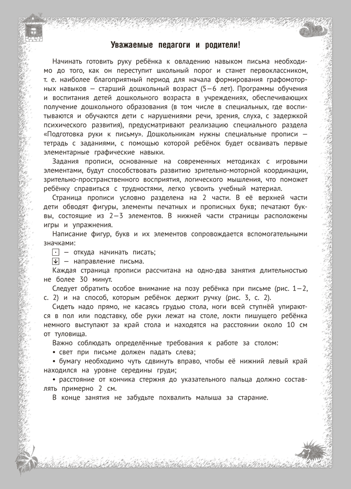 Пособие направлено на подготовку детей к овладению навыком письма. Представленные задания основаны на современных методиках, включают игровые элементы и способствуют развитию зрительно-моторной координации, зрительно-пространственного восприятия, логического мышления ребят.