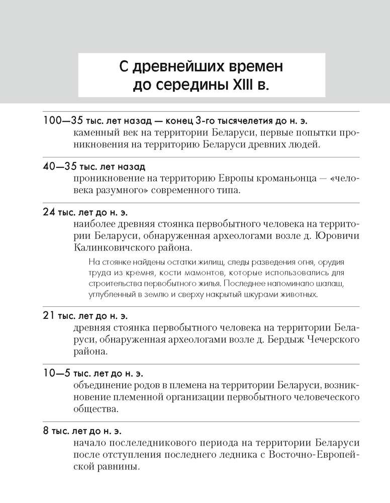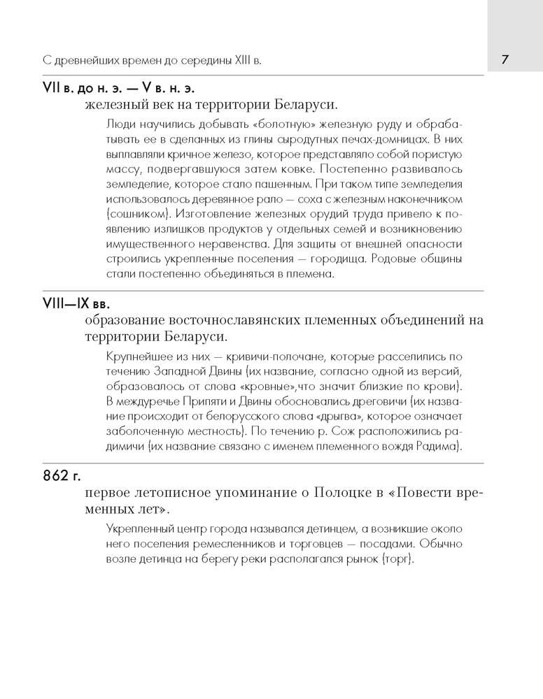 Издание включает даты исторических событий с древнейших времен до начала XXI в., обязательное знание которых предусмотрено учебными программами для 6–11-х классов учреждений общего среднего образования.