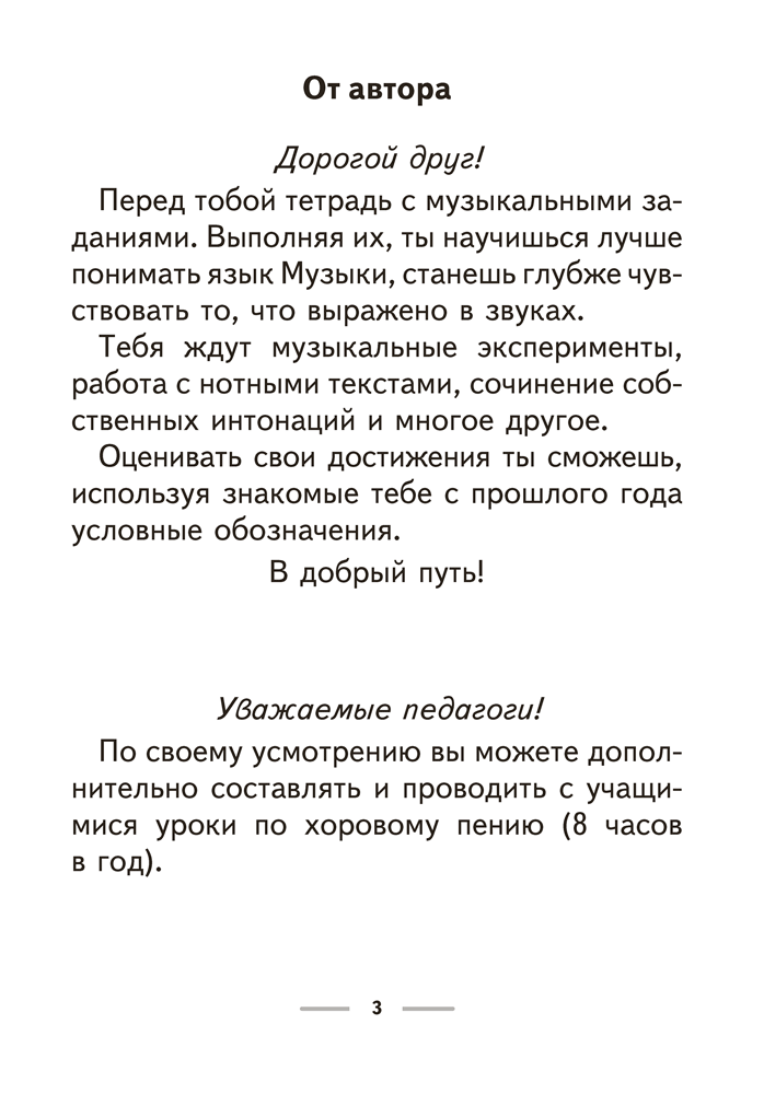 Тетрадь соответствует учебной программе и содержит задания, которые помогут развить музыкальные способности детей, а также позволят им научиться самостоятельно оценивать свою деятельность.