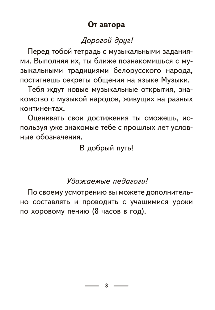 Тетрадь соответствует учебной программе и содержит задания, которые помогут развить музыкальные способности детей, а также позволят им научиться самостоятельно оценивать свою деятельность.