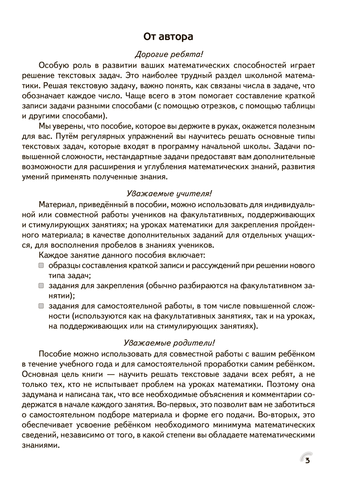 Рабочая тетрадь содержит оригинальные задания, в том числе занимательного и игрового характера, расширяющие и углубляющие учебный компонент. Стержнем издания выступает линия текстовых (сюжетных) задач.