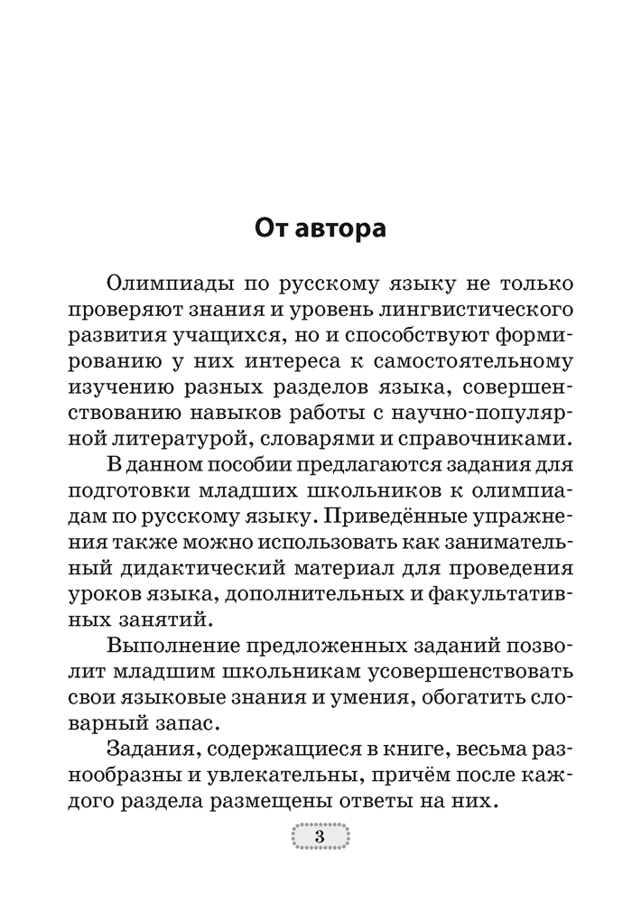 Пособие включает задания для подготовки младших школьников к олимпиадам по русскому языку. Приведённые упражнения также можно использовать как занимательный дидактический материал при проведении уроков русского языка и факультативных занятий.