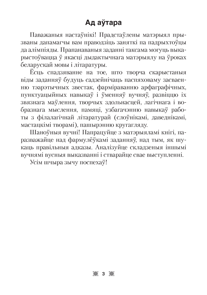 Прадстаўленыя ў кнізе алімпіядныя заданні па беларускай мове і літаратуры зацікавяць вучняў магчымасцю паразважаць над іх фармулёўкамі, над тым, як шукаць правільныя адказы, а настаўнікам дапамогуць праводзіць цікавыя заняткі па падрыхтоўцы да алімпіяды.
