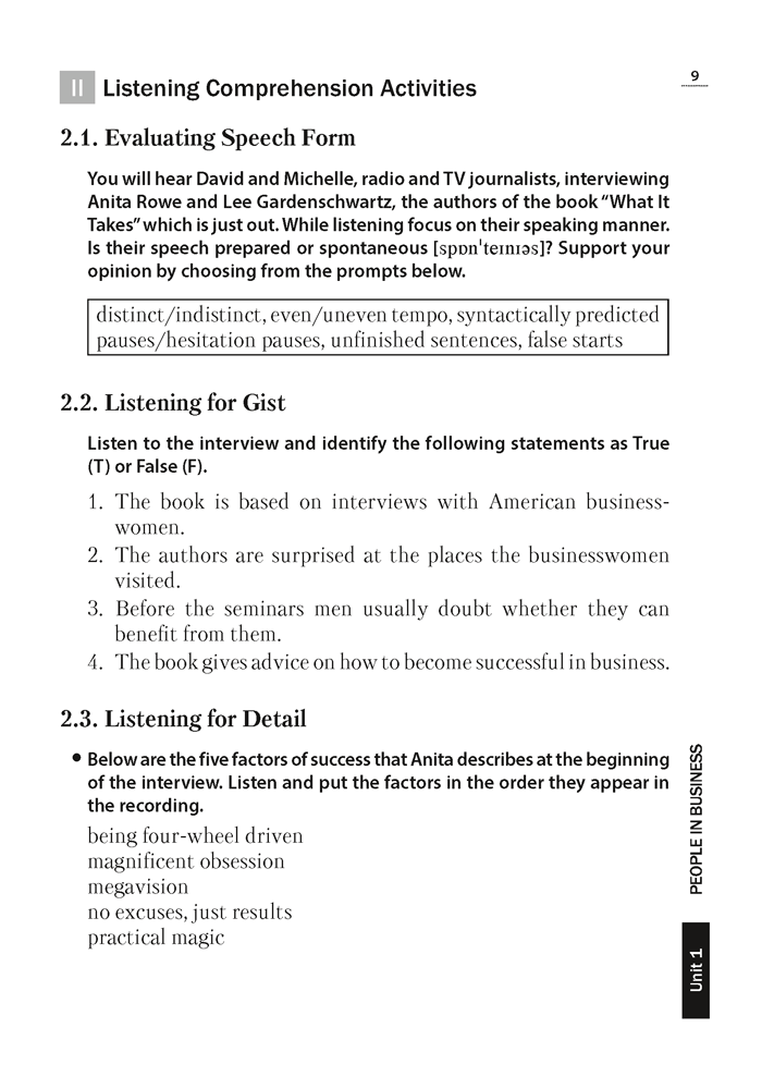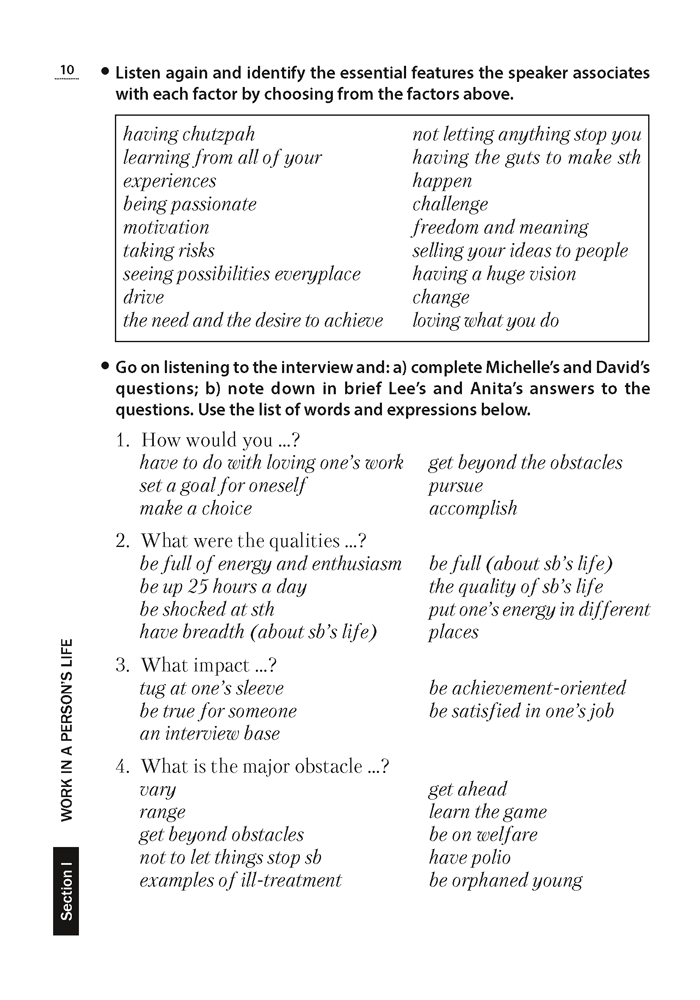 Пособие направлено на развитие навыков смыслового восприятия звучащей английской речи. Издание содержит систему упражнений, которые позволяют выработать умения, необходимые для выделения основной информации и распознавания существенных деталей при прослушивании аутентичного текста.