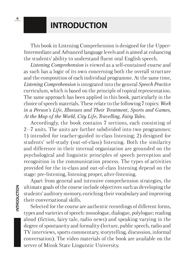 Предназначено для студентов университетов и колледжей, изучающих английский язык как основную специальность на продвинутом этапе обучения. Может быть полезно для разных категорий лиц, изучающих английский язык и желающих усовершенствовать навыки аудирования.
