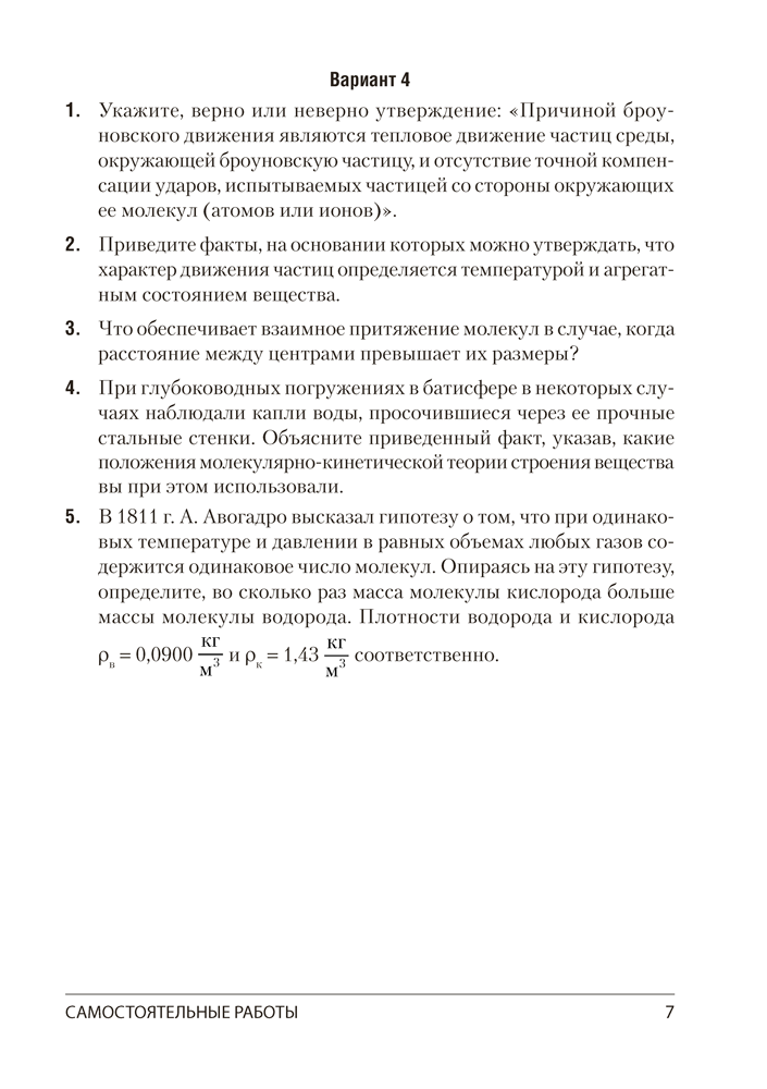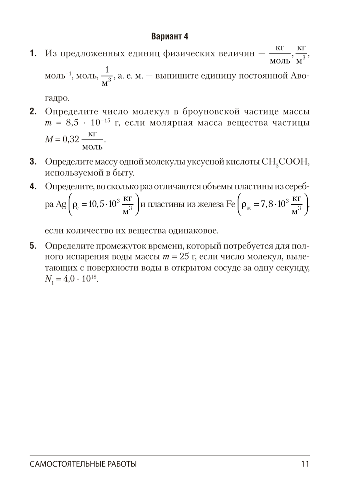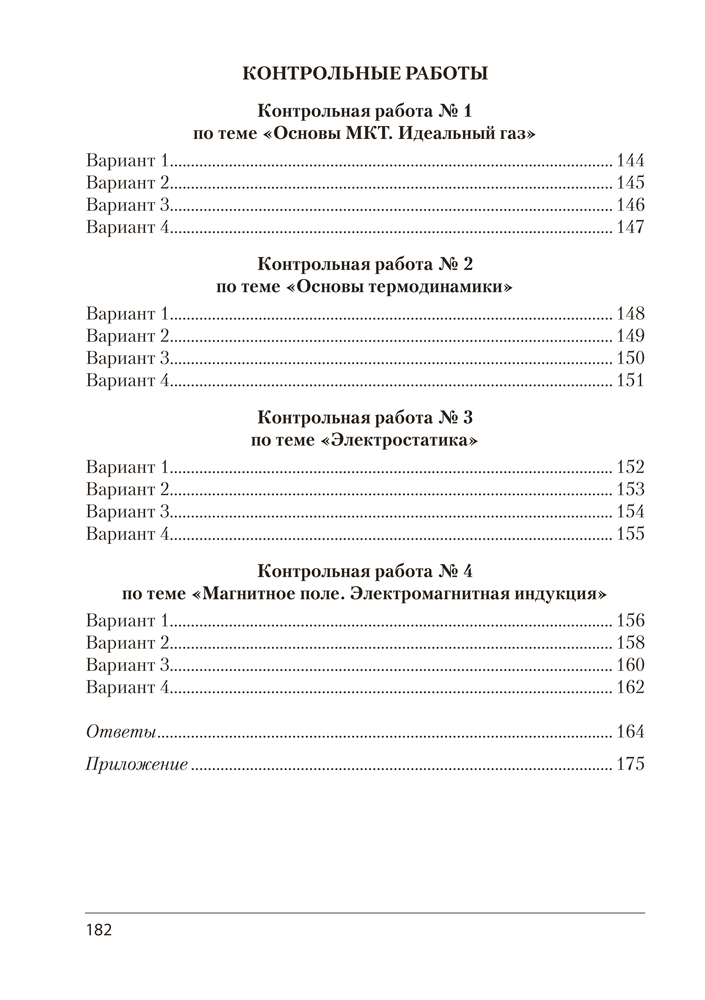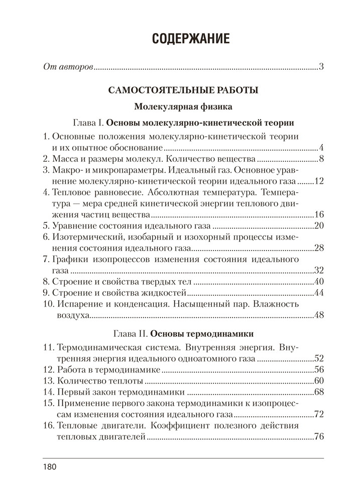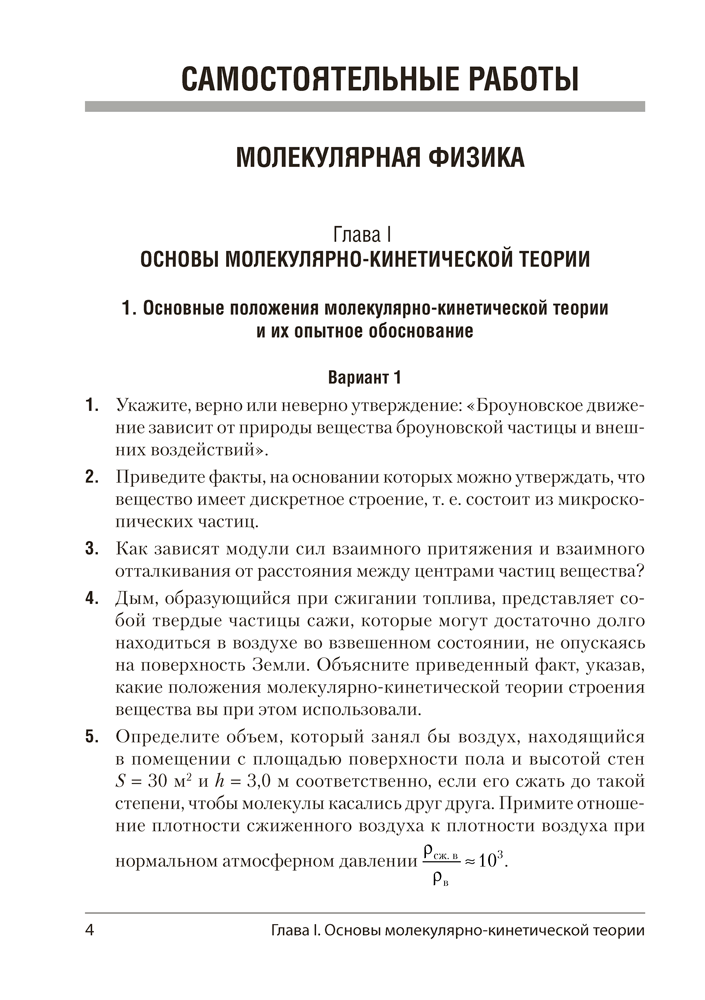 Пособие содержит 30 самостоятельных и 4 контрольные работы, каждая из которых представлена в четырех вариантах. Все работы соответствуют учебной программе по физике для 10 класса базового уровня. В приложении даны справочные материалы, необходимые для выполнения заданий.
