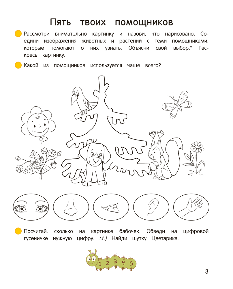 Пособие включает развивающие игровые задания, которые будут способствовать уточнению, расширению и систематизации уже имеющихся у детей от 4 до 5 лет представлений о природе, животных и растениях как живых существах, их разнообразии, уникальности, а также о функциях органов чувств человека, помогающих познавать окружающий мир.