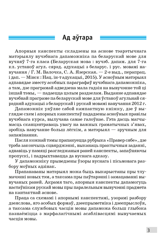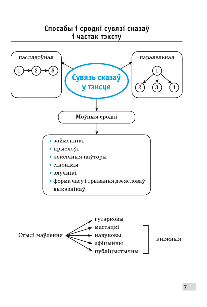 Кніга складзена на аснове тэарэтычнага матэрыялу вучэбнага дапаможніка па беларускай мове для 7 класа. Асноўныя правілы, пададзеныя ў выглядзе схем і апорных канспектаў, будуць карыснымі пры вывучэнні і паўтарэнні новых тэм, а рубрыка «Правер сябе» дапаможа замацаваць пройдзены матэрыял.
