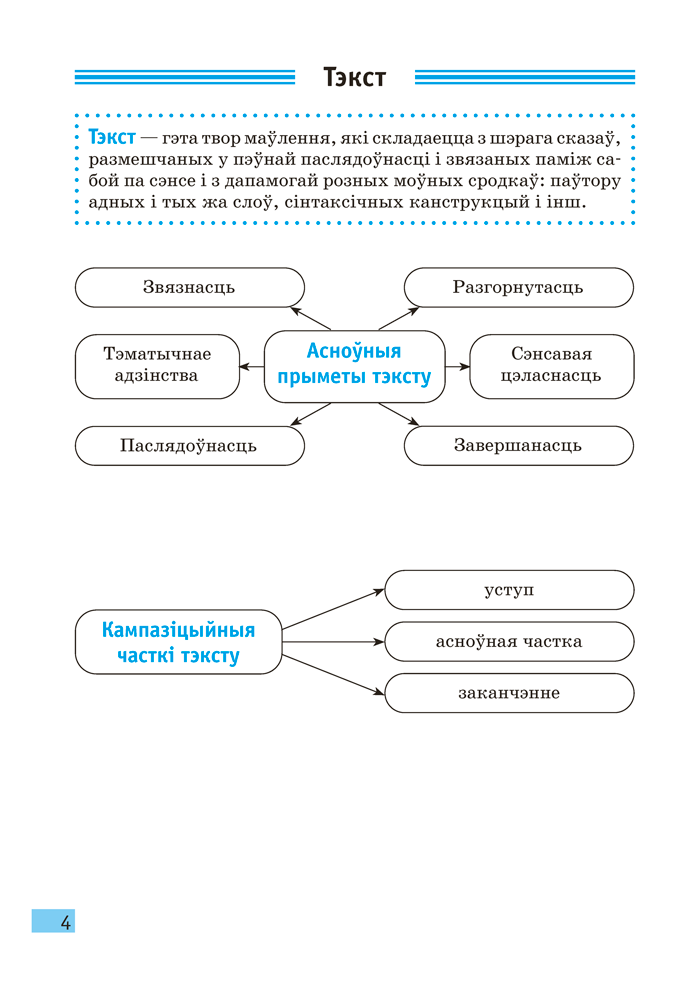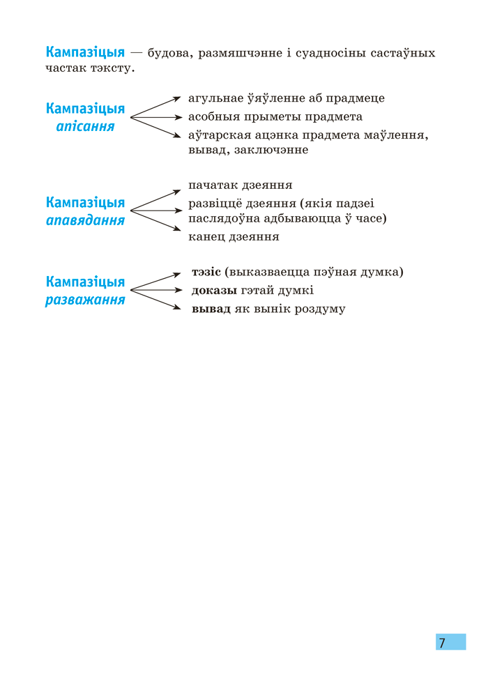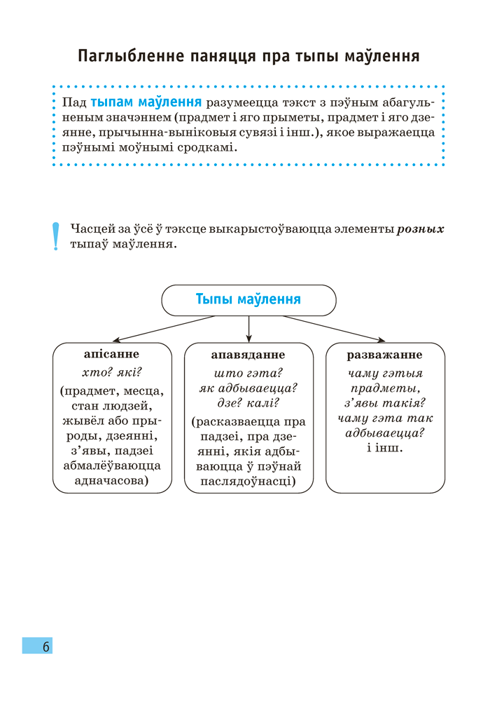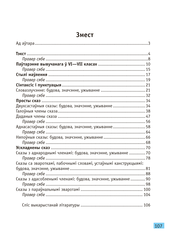 Кампактная кніга ў выглядзе зручных для запамінання схем і апорных канспектаў змяшчае асноўныя правілы вучэбнага курса, у ёй вылучана самае галоўнае. Гэта дасць магчымасць сканцэнтраваць увагу на важных граматычных з’явах і зрабіць навучанне больш лёгкім. Пасля кожнай тэмы прапануецца матэрыял для самаправеркі — рубрыка «Правер сябе», якая складаецца з дзвюх частак: у першай трэба дапоўніць сцвярджэнні, выканаць практычныя заданні, а ў другой — аднавіць у памяці разгледжаныя раней тэмы, запаўняючы пропускі, і падрыхтавацца да вуснага адказу.