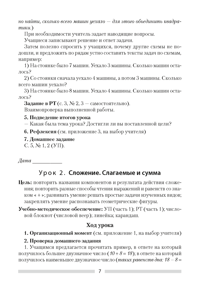 Математика. План-конспект уроков. 2 класс