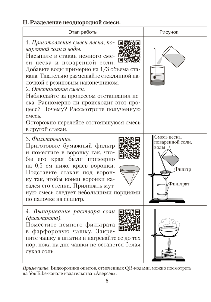Видеоролики опытов доступны для просмотра на YouTube-канале издательства «Аверсэв». Переход к материалам осуществляется с помощью QR-кодов.