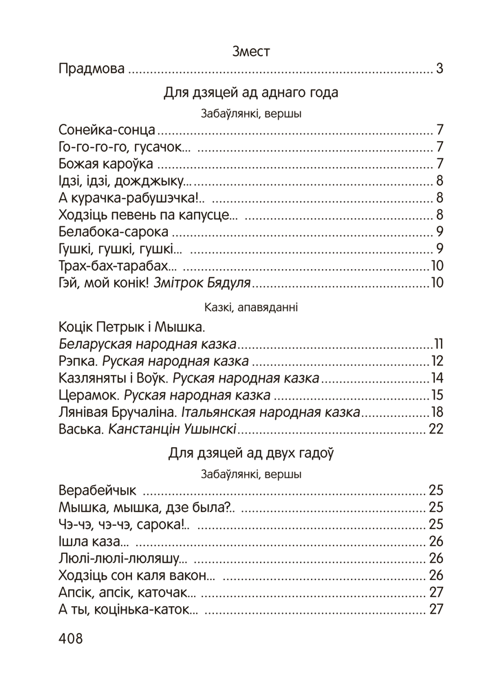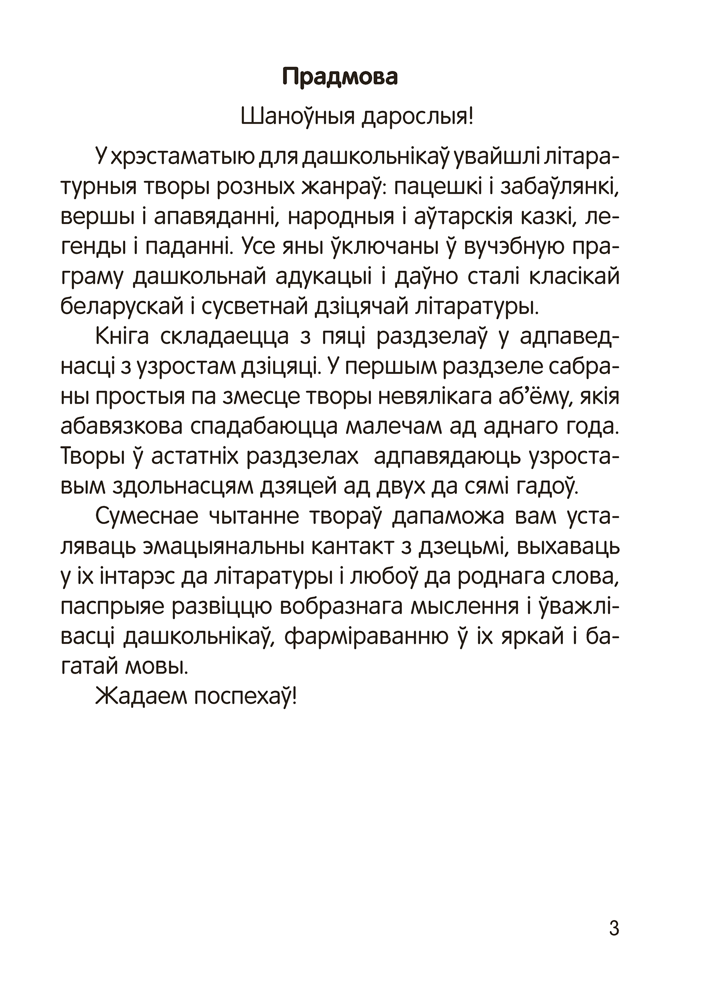 Кніга змяшчае творы мастацкай літаратуры і фальклору, якія ўваходзяць у вучэбную праграму дашкольнай адукацыі (адукацыйная галіна «Мастацкая літаратура»).