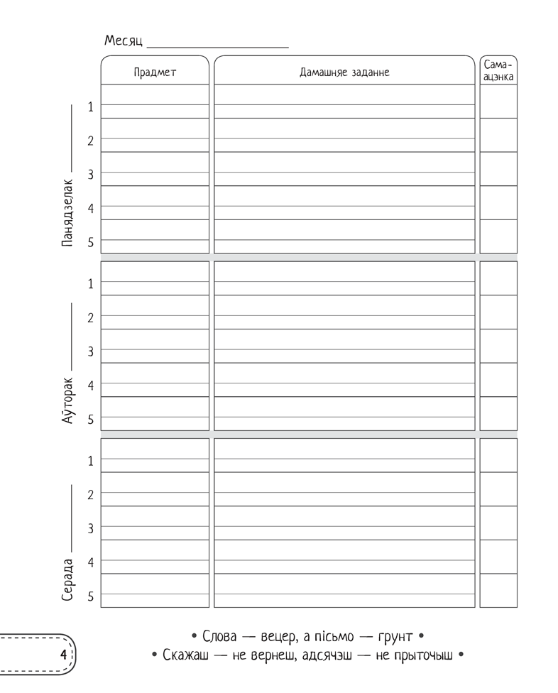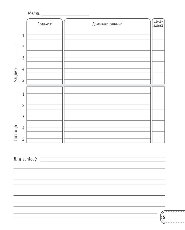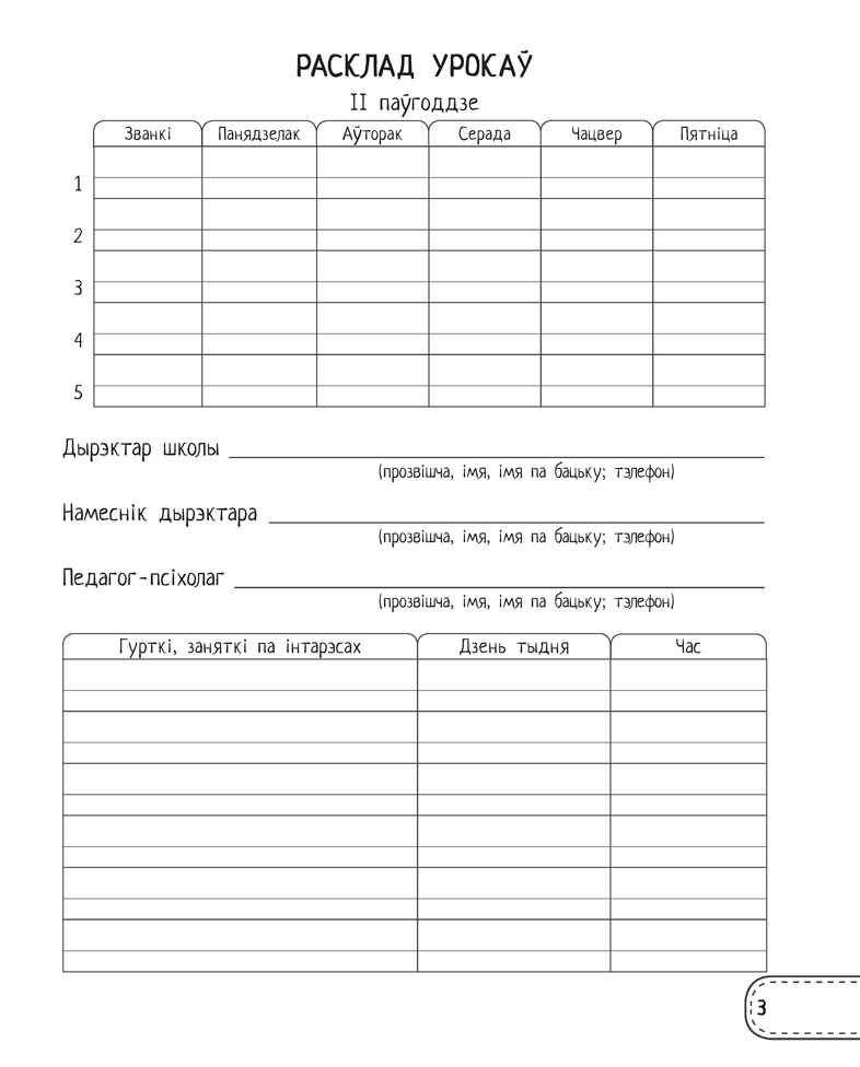 Акрамя раскладу ўрокаў і дамашняга задання, у «Дзённічак» можна запісаць дадатковыя мерапрыемствы на кожны тыдзень, планы на канікулы, у асобныя раздзелы – заўвагі, падзякі, рэкамендацыі настаўніка. У канцы дапаможніка прыводзяцца правілы запаўнення і вядзення «Дзённічка».
