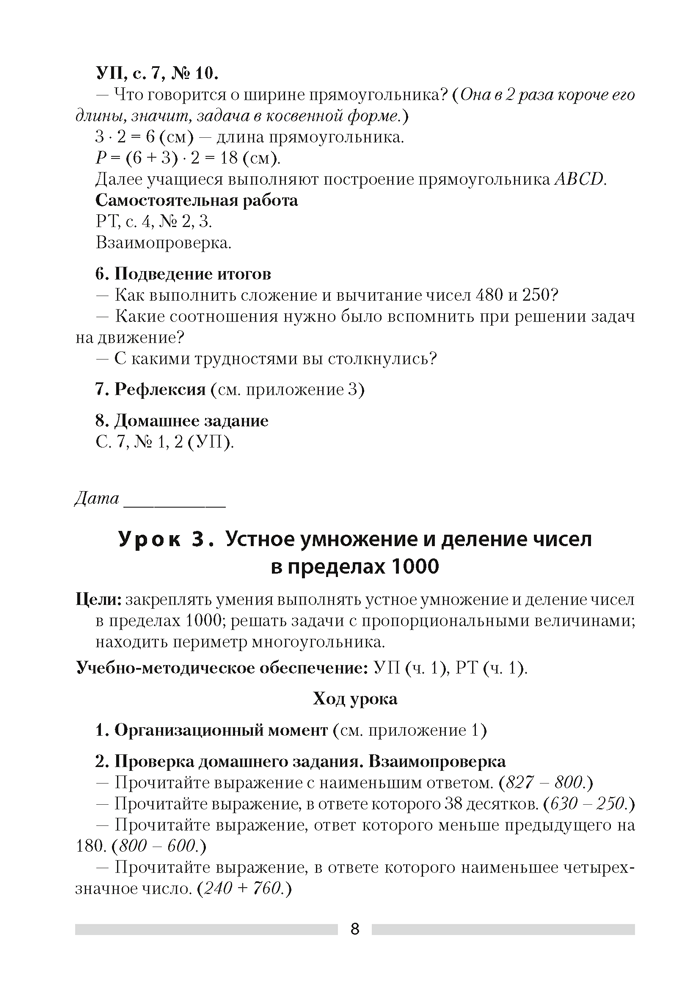 Математика. План-конспект уроков. 4 класс