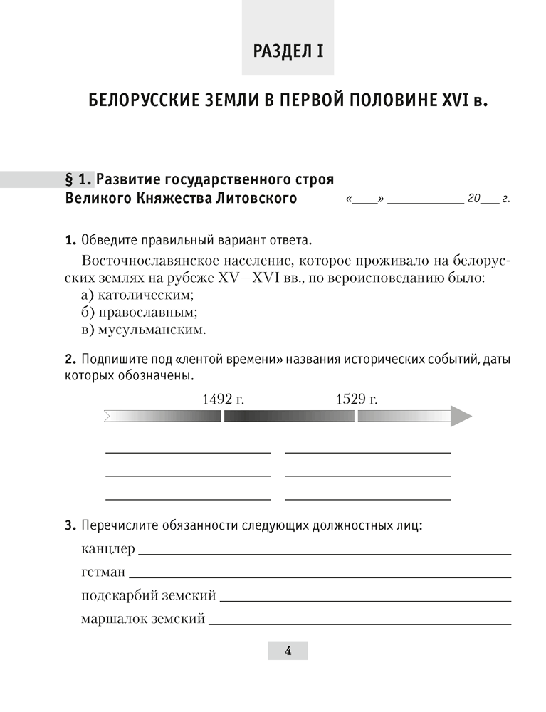 История Беларуси, ХVІ–ХVІІІ вв. 7 класс. Рабочая тетрадь