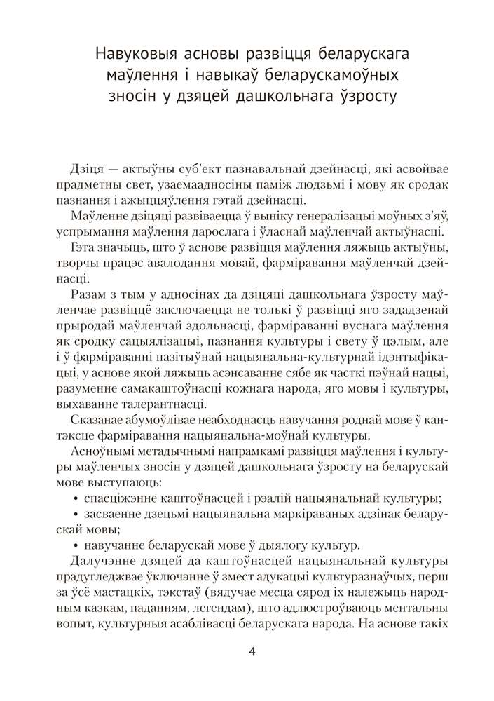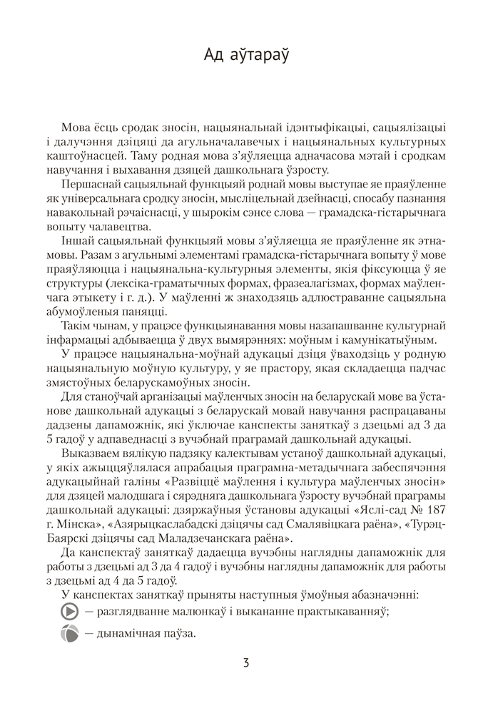 У вучэбна-метадычным дапаможніку раскрываецца методыка навучання дзяцей дашкольнага ўзросту беларускай мове і навыкам маўленчых зносін. Змест дапаможніка адпавядае задачам вучэбнай праграмы дашкольнай адукацыі дзяцей ад 3 да 5 гадоў (адукацыйная галіна «Развіццё маўлення і культура маўленчых зносін»).