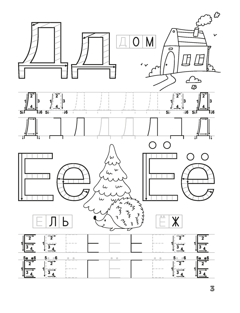 Издание познакомит дошкольников с буквами русского алфавита и поможет отработать навык их печатного написания. Пособие направлено на развитие мелкой моторики, графических навыков, ориентации на листе бумаги, усидчивости и внимания. Подходит для занятий с праворукими детьми и для детей с леворукостью.