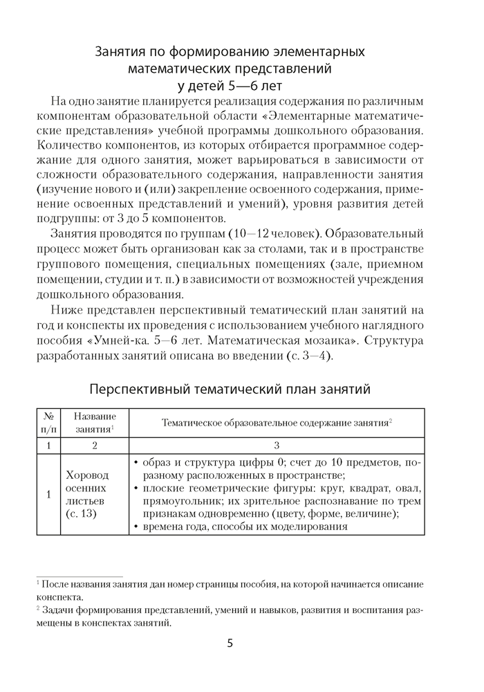 Содержание книги направлено на реализацию задач образовательной области «Ребенок и математика» учебной программы дошкольного образования в старшей группе (от 5 до 6 лет). Включает перспективный тематический план и конспекты проведения занятий.
