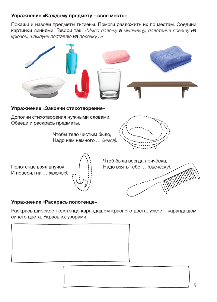 Учебное наглядное пособие предназначено для работы с детьми дошкольного возраста в пункте коррекционно-педагогической помощи. Представленный материал будет полезен учителям-дефектологам при проведении коррекционных занятий с дошкольниками, имеющими нерезко выраженное общее недоразвитие речи (неосложненный вариант, осложненный вариант (при дизартрии и ринолалии)). Содержание пособия включает упражнения, объединенные в 5 тематических блоков: «Предметы гигиены», «Одежда», «Обувь», «Посуда», «Продукты питания». Это позволяет в комплексе решать поставленные учебные задачи, развивать речь детей на основе ознакомления с предметами и явлениями окружающего мира.