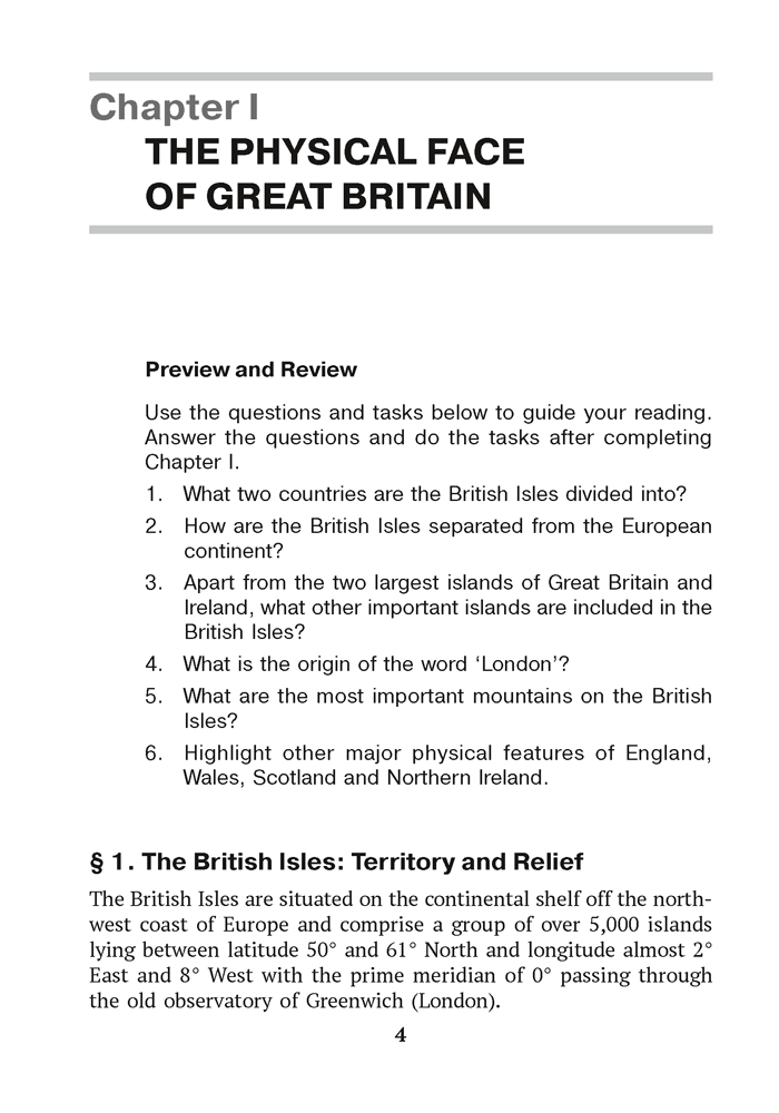 В учебном пособии представлены страноведческие сведения о Великобритании в XX—XXI веках. Освещается история, внешнеполитическая деятельность Соединенного Королевства, характеризуется политическое устройство, географическое положение, современное экономическое и региональное развитие страны, рассказывается о средствах массовой информации. В начале и конце каждой главы приведены задания, направленные на контроль понимания изучаемого материала и развитие навыков устной речи.