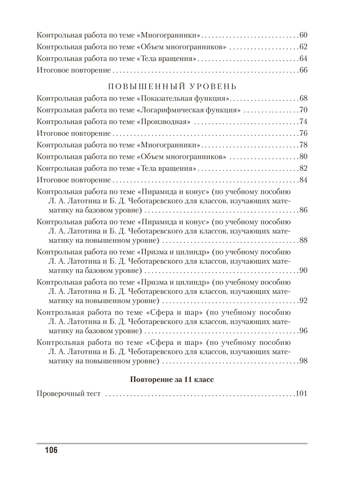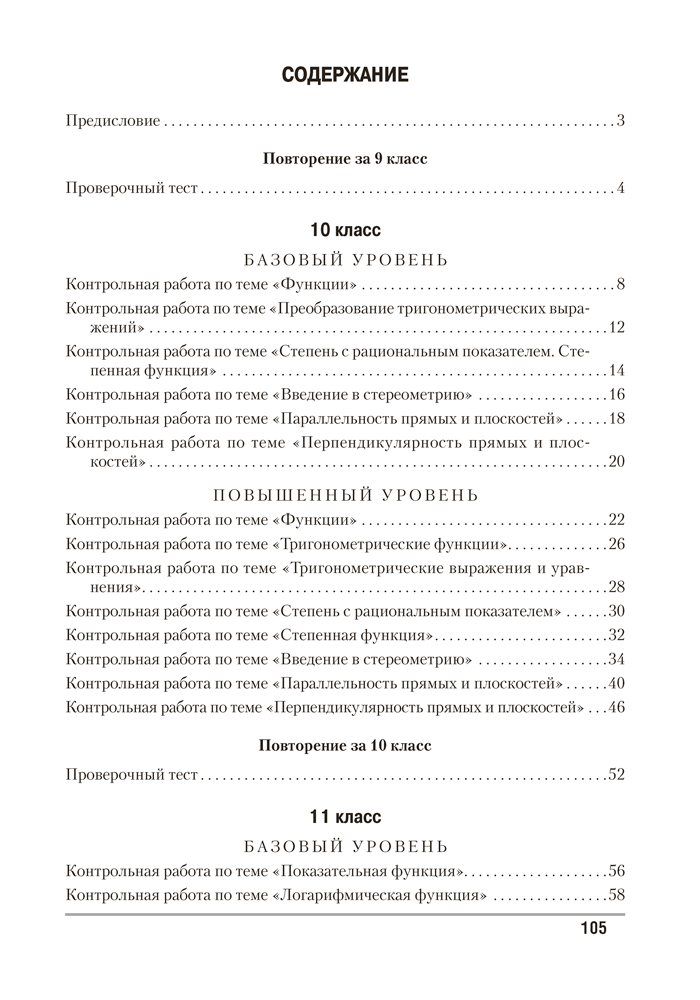 В пособии приведены контрольные работы по математике для учащихся 10—11 классов. Содержание работ полностью соответствует действующей учебной программе. Книга включает контрольные работы для базового и повышенного уровней.