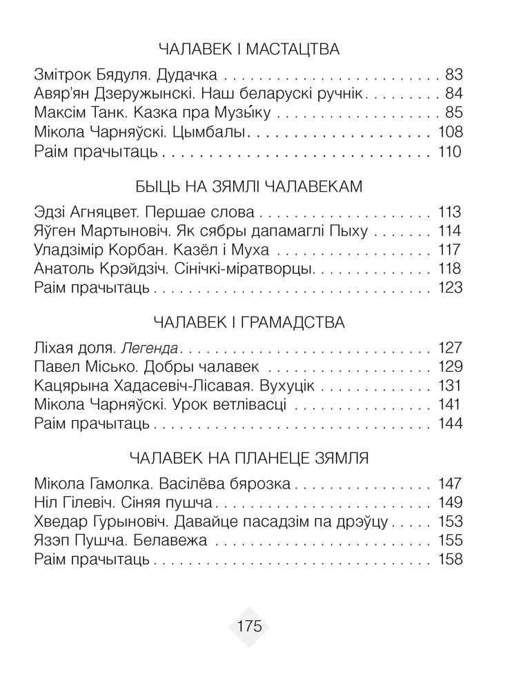 Змест хрэстаматыі адпавядае тэматычным раздзелам вучэбнага дапаможніка «Літаратурнае чытанне. 4 клас» і ўключае творы, рэкамендаваныя вучэбнай праграмай для пазакласнага чытання.