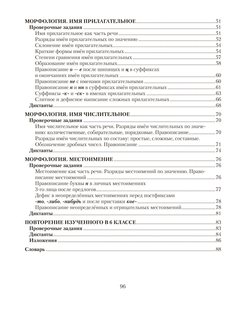 Пособие составлено в соответствии с учебной программой по русскому языку для 6 класса и содержит разнообразный материал: проверочные задания, диктанты, изложения.