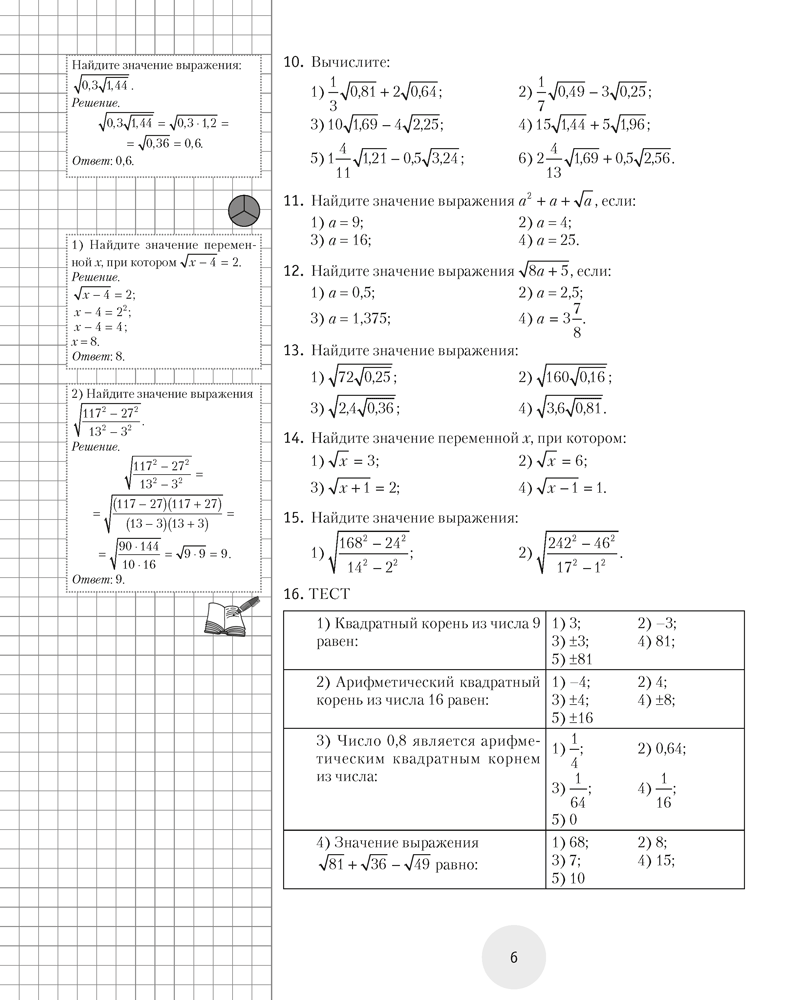 Пособие подготовлено в соответствии со школьной программой по математике и содержит задания и тесты по тем разделам алгебры и геометрии, которые изучаются в 8 классе. К каждой теме даются необходимые теоретические сведения и практические рекомендации, приводятся ответы ко всем заданиям и тестам.