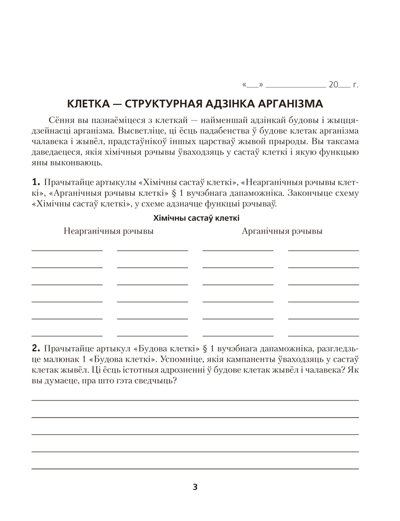 Рабочы сшытак па біялогіі для 9 класа