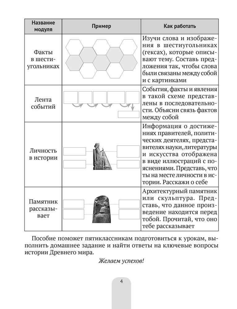 Издание соответствует программе и учебному пособию по истории Древнего мира для 5 класса. Учебный материал представлен в виде рисунков, схем и таблиц, что облегчает его восприятие и запоминание, способствует повторению и систематизации изученного. Кроме того, с помощью пособия учителя смогут разнообразить урок, а родители – поддержать ребенка в изучении предмета.