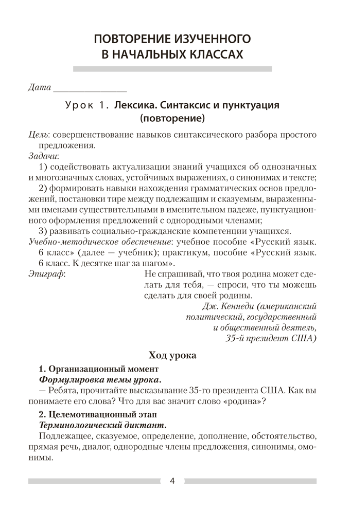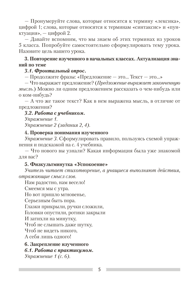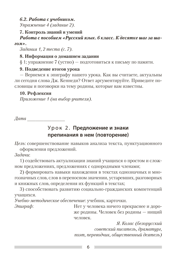 Русский язык. План-конспект уроков. 6 класс