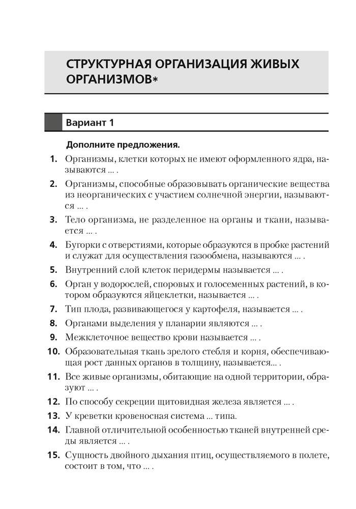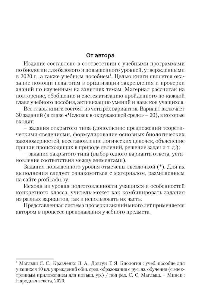 Пособие разработано в соответствии с учебной программой по биологии для 10 класса (для базового и повышенного уровней). Оно поможет учителю организовать проведение учебных и стимулирующих занятий по предмету. Материал пособия рассчитан на повторение, обобщение и систематизацию изученного, а также на активизацию и закрепление знаний учащихся.