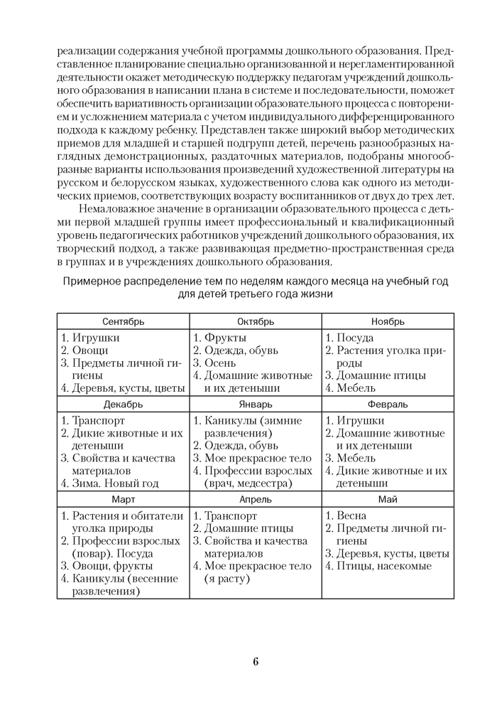 В пособии предложены примерные темы на учебный год, общие цели для каждой темы, программные задачи игр, занятий, разнообразные методические приемы, перечень демонстрационного и раздаточного материала к предложенным занятиям, художественные тексты по темам, соответствующие возрастным особенностям детей от двух до трех лет.