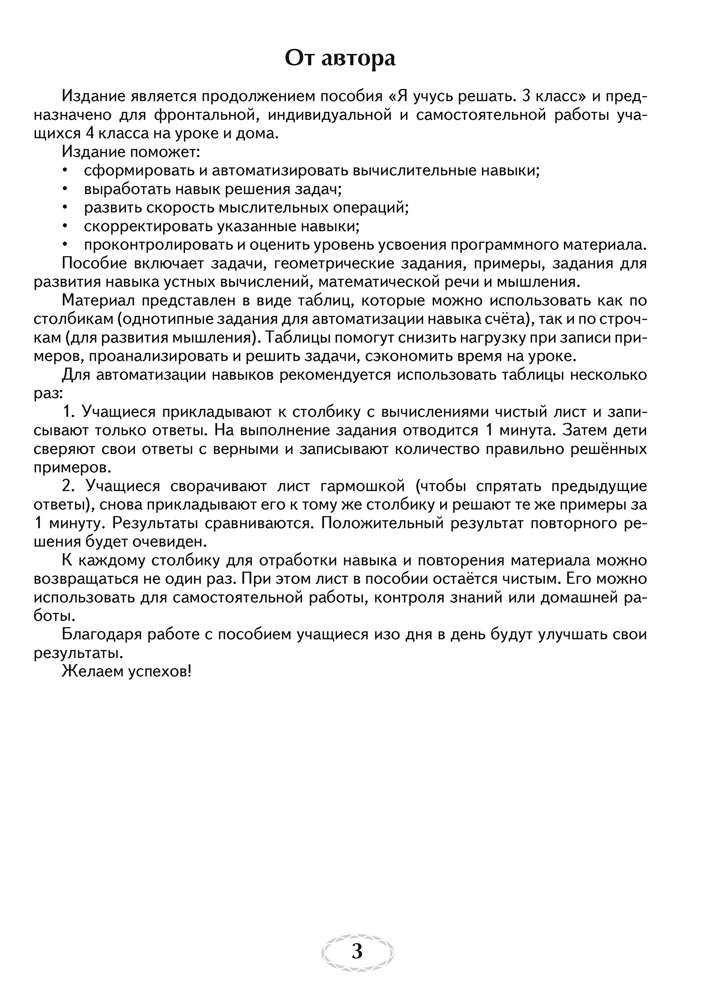 Пособие позволит научиться быстро и правильно решать примеры и задачи различных типов, проконтролировать усвоение материала, снизить нагрузку при записывании примеров и задач, сэкономить время на уроке.