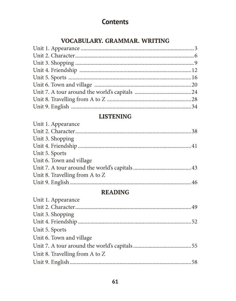 Тетрадь дополняет учебное пособие по английскому языку для 7 класса и соответствует программе. В издании содержатся тесты для определения степени развития языковых умений учащихся (восприятие и понимание речи на слух, чтение и письмо), а также задания на проверку уровня сформированности лексико-грамматических навыков.