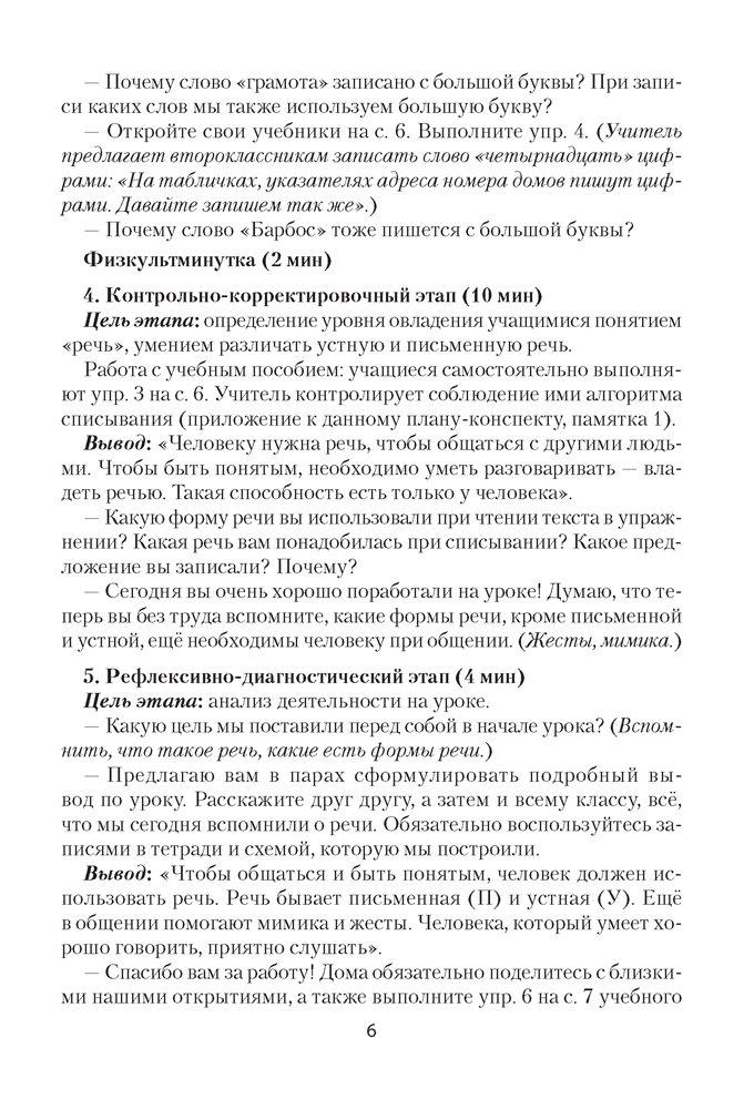 Русский язык. План-конспект уроков. 2 класс