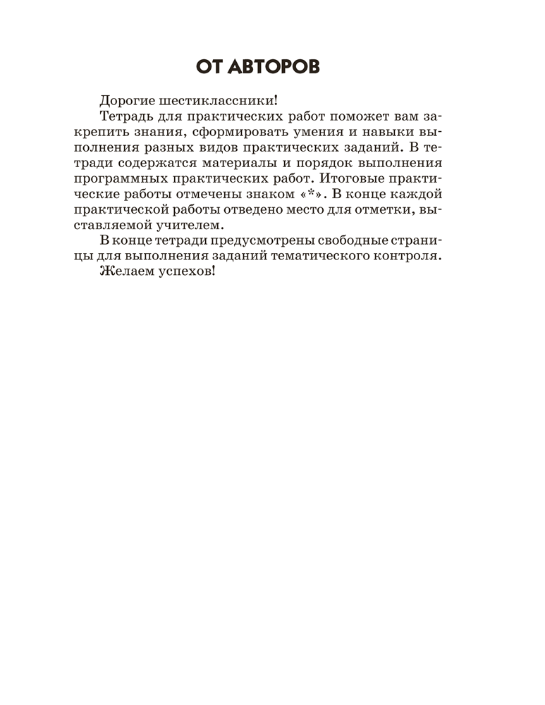 Тетрадь составлена в соответствии с программой и учебным пособием и является одним из компонентов учебно-методического комплекса по географии для 6 класса. Она содержит материалы и инструкции для проведения программных практических работ.