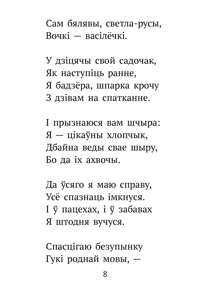 Хрэстаматыя ўключае найбольш каштоўныя і значныя творы для пазакласнага чытання, якія пакуль не ўваходзяць у спіс абавязковых для прачытання. Паэзія і проза сучасных беларускіх пісьменнікаў пазнаёмяць маленькіх чытачоў з прыгажосцю роднай мовы і дапамогуць адправіцца ў захапляльнае падарожжа па Беларусі.