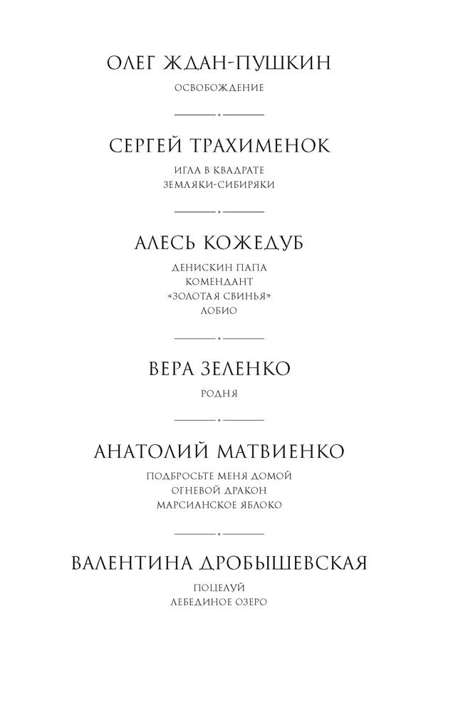 Новая книга из серии «Сучасная беларуская літаратура» включает рассказы шести современных прозаиков. Небольшие произведения показывают, что у каждого автора свой, особенный взгляд на окружающий мир. Писатели не замахиваются на то, чтобы одним произведением разрешить глобальные социальные конфликты, но заставляют задуматься о том, как приоткрыть сложный внутренний мир хотя бы одного человека.
