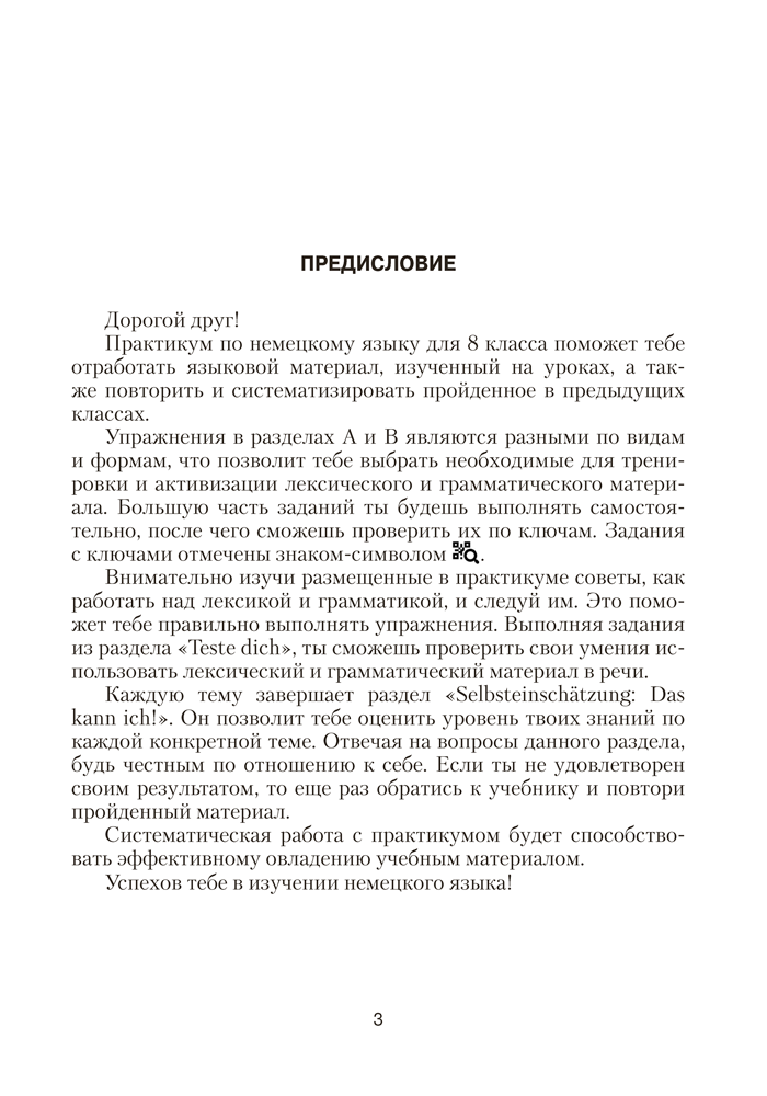 Практикум дополняет учебное пособие «Немецкий язык. 8 класс» авторов А. Ф. Будько, И. Ю. Урбанович. Издание включает упражнения, которые помогут научиться легко переводить, запоминать и употреблять новые слова, а также закрепить изученные грамматические правила. Содержание материала практикума строго соответствует разделам учебного пособия.