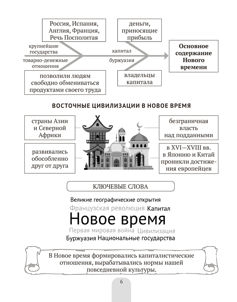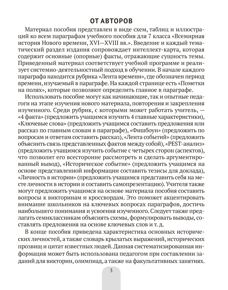 Издание соответствует учебной программе, учебному пособию и является частью учебно-методического комплекса по всемирной истории для 7 класса. Материал представлен в виде рисунков, схем, таблиц и авторских интеллект-карт, что облегчает его восприятие и запоминание, способствует повторению и систематизации изученного. Кроме того, с помощью пособия учителя смогут разнообразить урок, а родители — поддержать ребенка в изучении предмета.