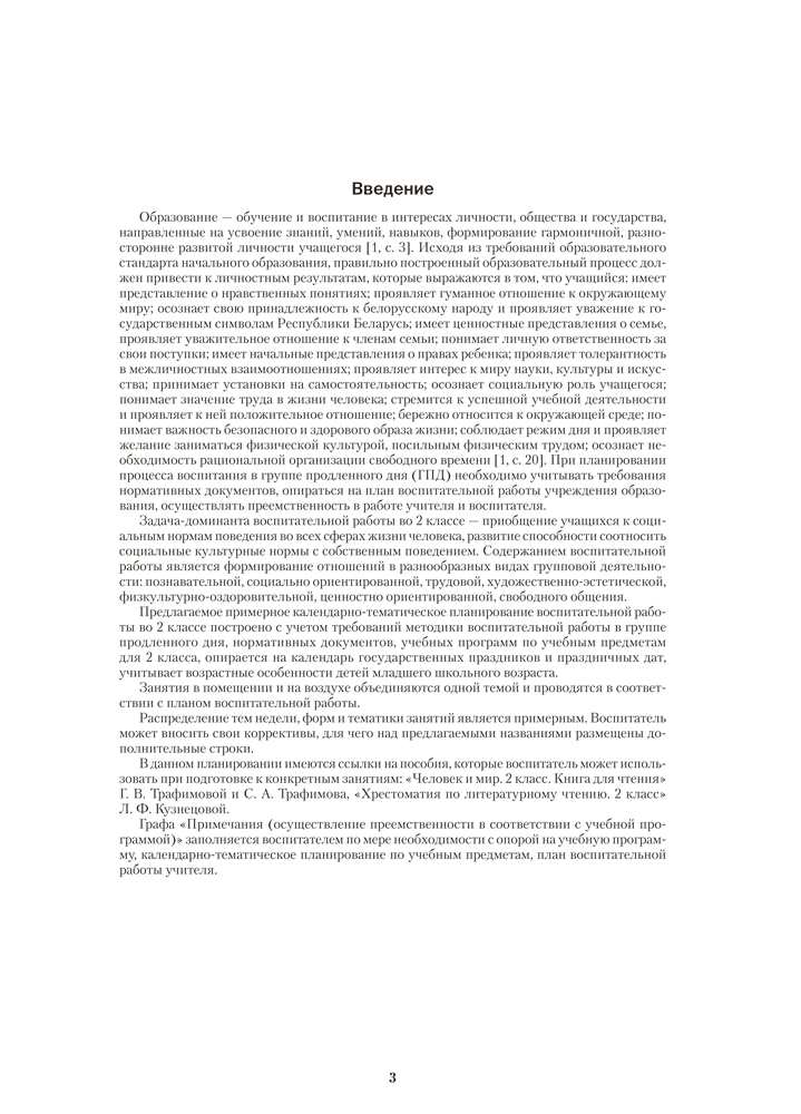 Примерное календарно-тематическое планирование составлено с учетом требований действующих учебных программ для 2 класса учреждений общего среднего образования с опорой на календарь государственных праздников и праздничных дат. Использование пособия поможет воспитателям групп продленного дня успешно организовать работу с детьми в помещении и на воздухе.